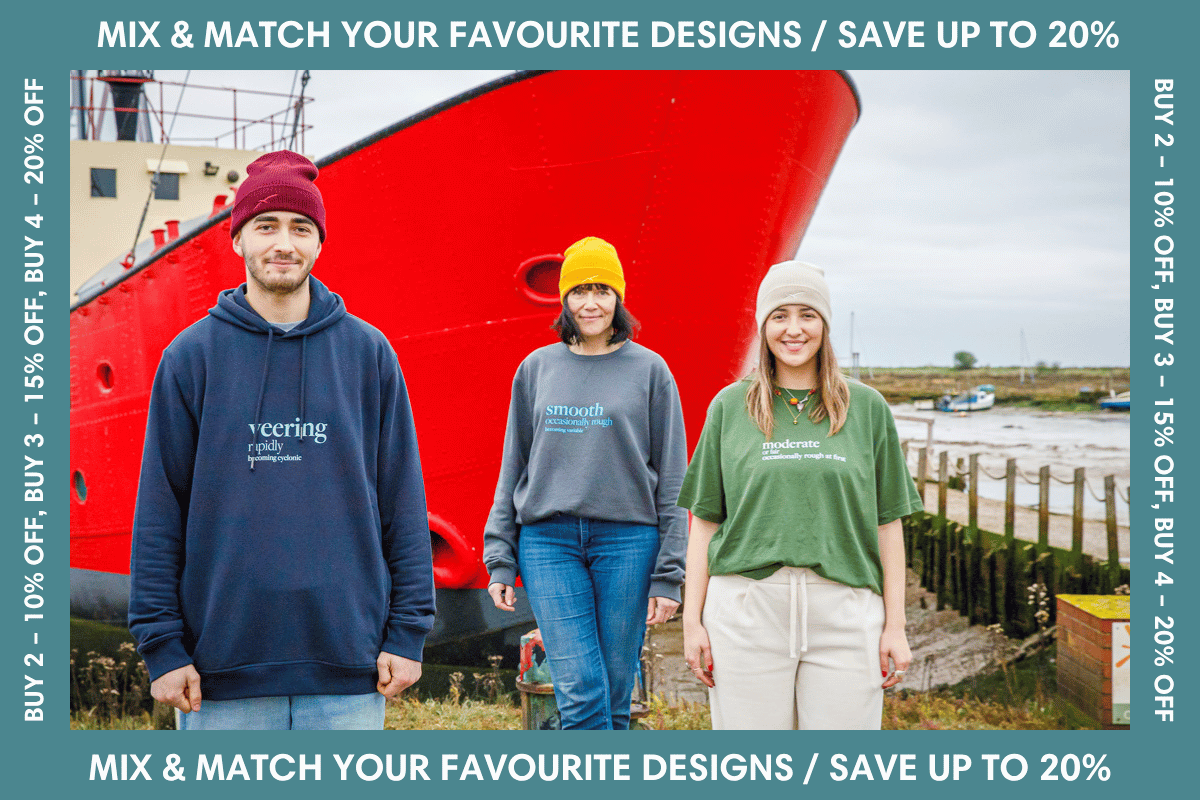 Just love my new Creek Sweatshirt. I needed a top for a canal trip that was not too warm, but perfect for a lovely autumn day on the river, the text 'smooth occasionally rough becoming variable' made my companions smile